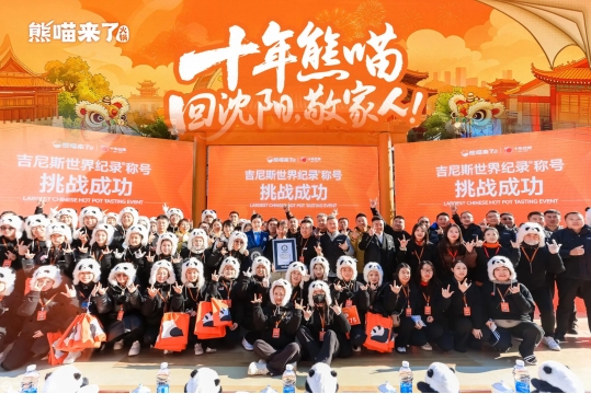 11月14日,沈阳太原街万达广场门前热闹非凡,国潮乐队奏响序曲,传统舞狮登台助兴,一项新的吉尼斯世界纪录在此诞生。由沈阳本土火锅品牌熊喵来了发起的“最大规模的中国火锅品鉴”挑战圆满成功,近300名沈阳市民与来沈游客共同见证这一高光时刻,活动得到了沈阳市和和平区政府的大力支持。