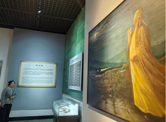 辽阳博物馆内,唐太宗辽阳吟咏《辽城望月》的画作。
