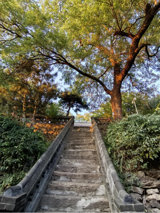 攀行首山,茂林奇石,景点错落,号称山海关外第一刹的清风寺颇有看头。该寺始于唐代,明代隆庆年间在原址重建,位于首山南麓半山腰处,为省内现存明代殿宇建筑典型代表。山门两侧,有一对乾隆皇帝撰写的楹联,启人心智,关东才子王尔烈也曾泼墨挥毫,留下“昙花香远”四字匾额。不远处,还遗存一段由花岗岩砌成的石阶古道,已走过450余年历史,承载无数游旅。旁边几株国槐,树龄已达数百年,随形就势,生长于山石之间,枝干高壮,生机勃勃。