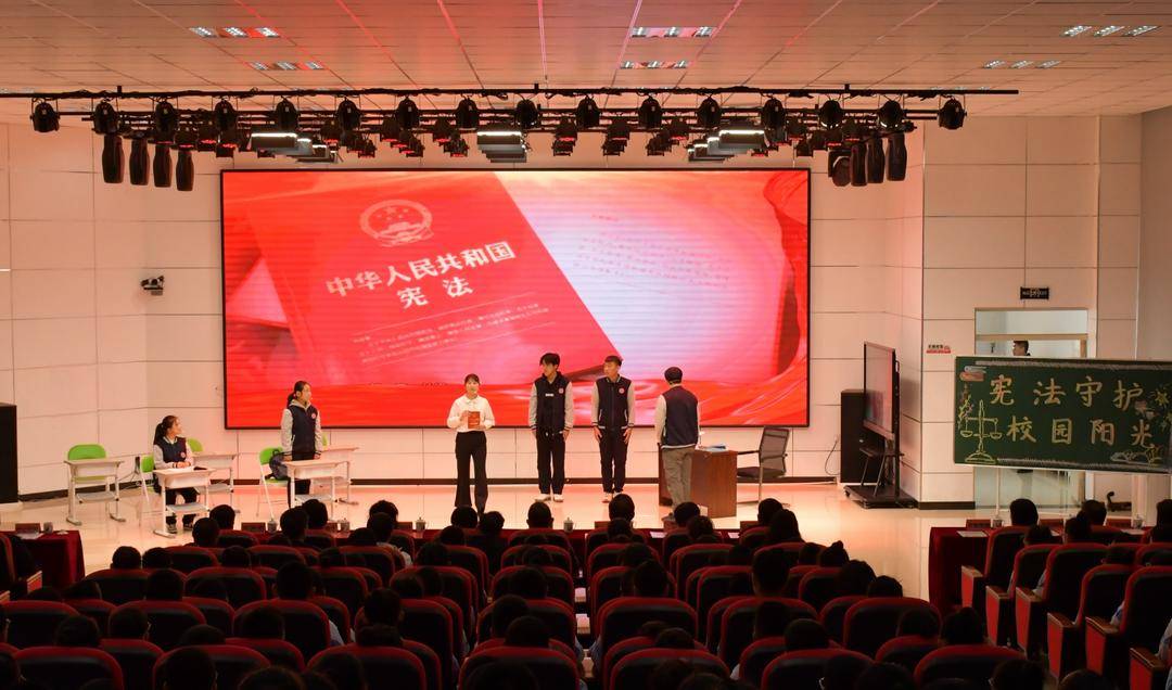 营口市戏曲艺术学院的学生现场演出了情景剧《宪法守护的阳光校园》,围绕防治校园欺凌和宪法权益保护主题,通过“及时干预欺凌”“保障受教育权”“师生法治互动”三个情景片段,生动呈现宪法在校园生活中的具体实践,让观众直观体会宪法对青少年成长的守护作用。