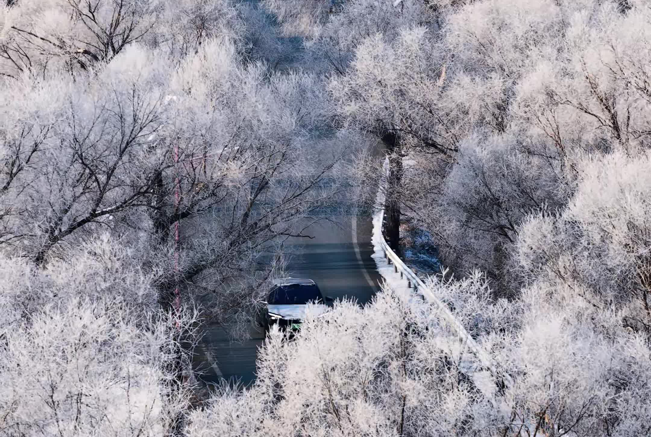 童話の世界!大凌河の霧氷が夢のように