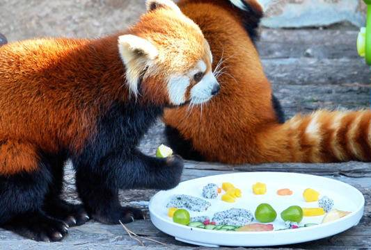 さながらセレモニー、「かわいい動物たち」も「元旦のごちそう」を満喫