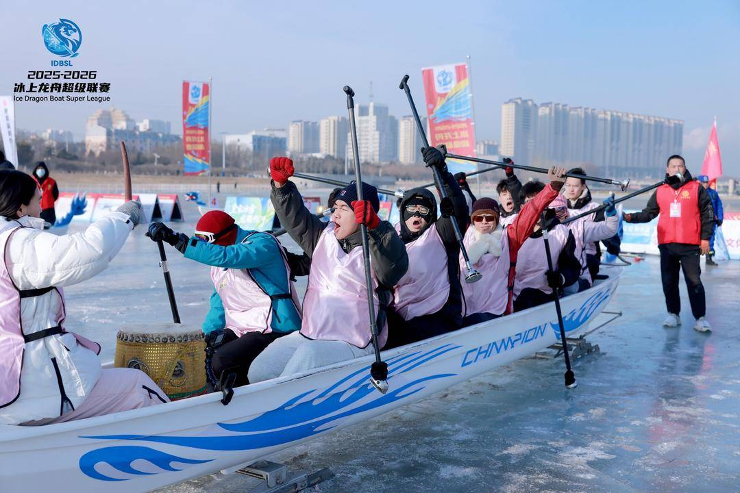 見て、竜舟が氷上を飛ぶ!