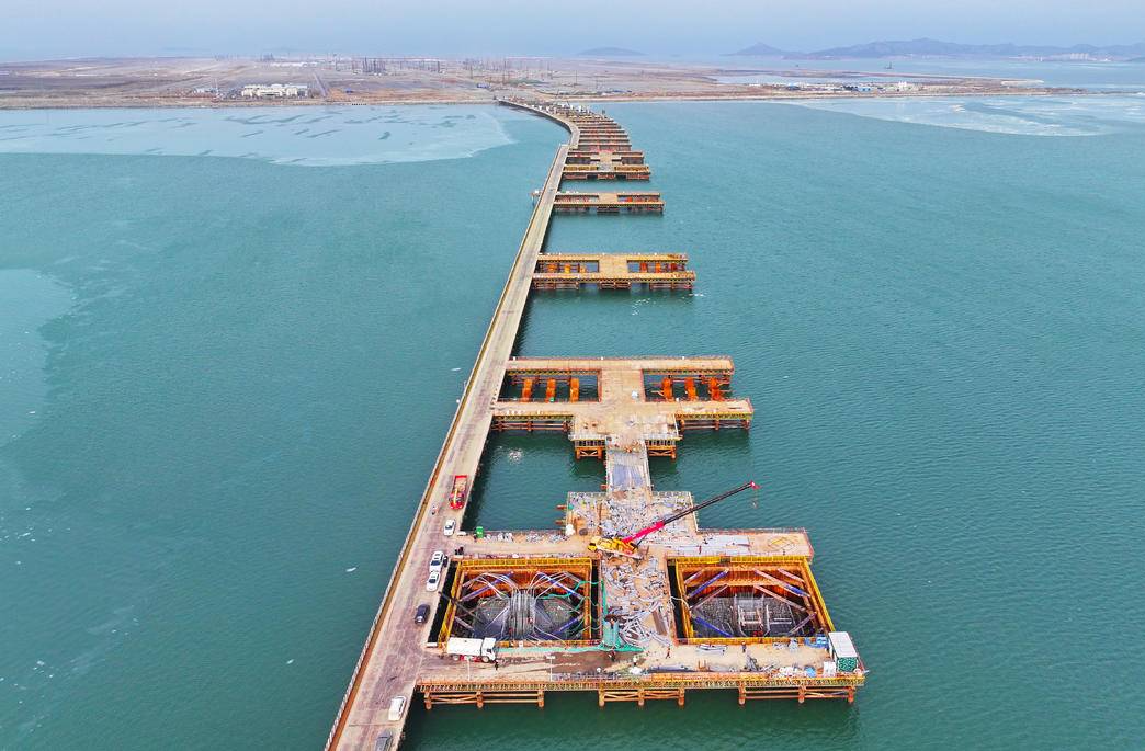 大連新空港中央連絡路の主要区間で、一日で二つの重要工程を達成!