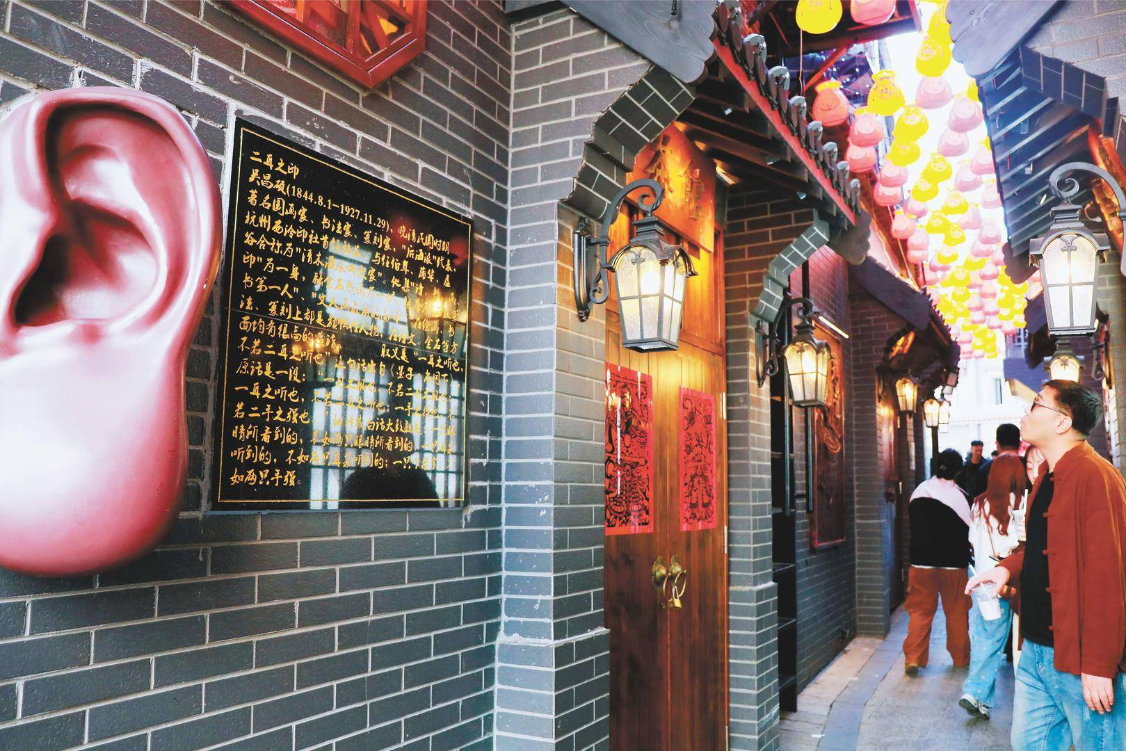 祝祭気分がまだ冷めやらぬ中、耳朶眼胡同から賑やかな声が聞こえてくる。この「耳の穴のように細い」路地は、百年以上前から民間工芸の「集積地」であった。現在では多くの現代工匠がこの地に根を下ろし、「工匠街百工坊」として新たな息吹を与えられている。青レンガと灰瓦、木製の窓格子は、百年変わらぬ街並みの質感を保ちながら、鐘楼の反り上がった軒と鼓楼の文様が盛京の記憶と呼応する。通り沿いの店舗はかつての四平街の構造に沿って復元され、「前店後坊」の形式で古き瀋陽の路地の神髄を甦らせている。