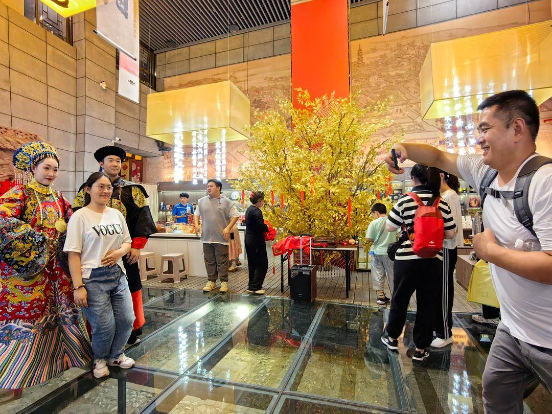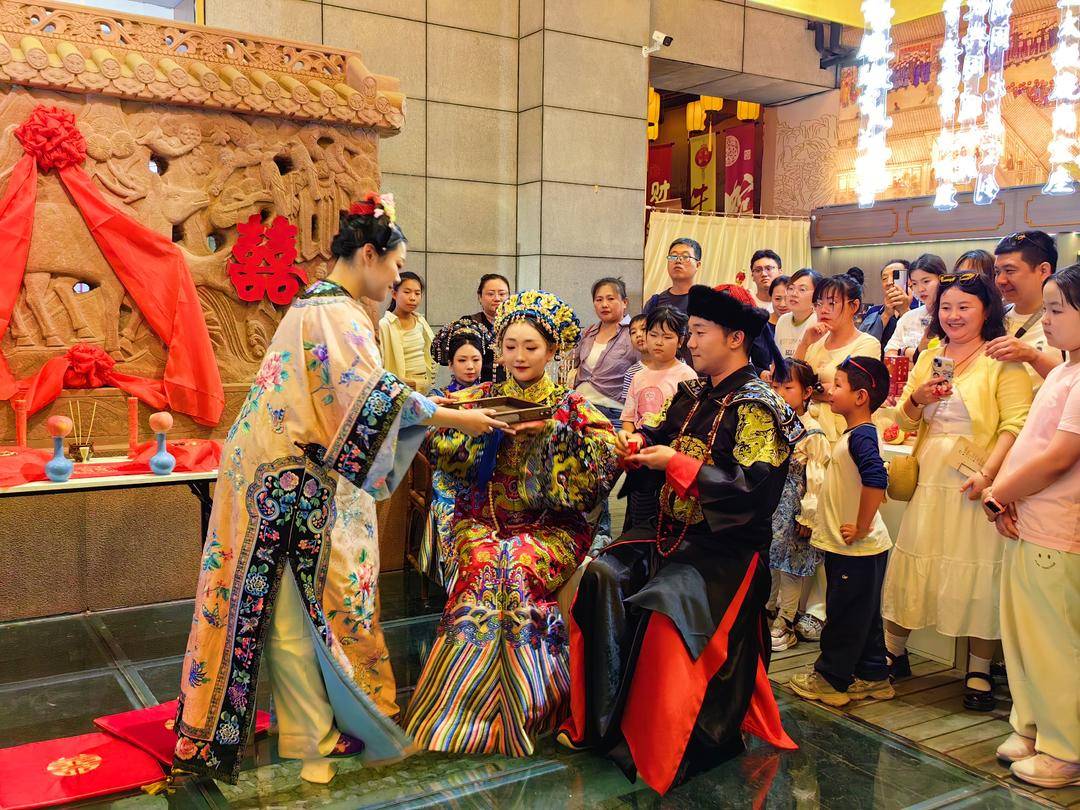 国慶節の連休、満月が誕生日を祝福する中、瀋陽方城は流動する「民俗博物館」と化した。「時代劇に迷い込んだみたい!」。北京から来た女性客はスマートフォンを掲げ、人混みの中で最高の撮影角度を探していた。彼女の傍らでは、壮大な伝統満族婚礼が執り行われている。彼氏は甘く微笑む:「私たちも来月結婚式を挙げるので、伝統的な要素を参考にしたくて」。今後の流れについて、二人は即座に意気投合した。「『盛京宴』へ行こう!婚礼から宴席まで、この伝統体験をとことん味わおう」。