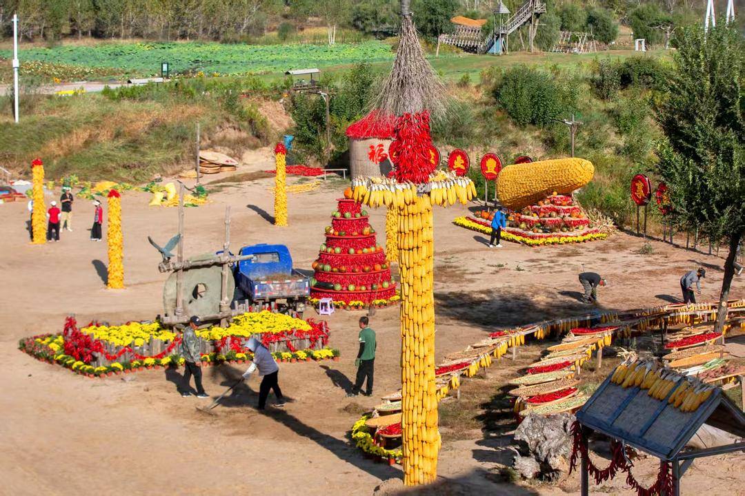 景勝地に足を踏み入れると、果てしなく広がる草原は巨大なキャンバスと化す。黄金色のトウモロコシ、真紅の唐辛子、橙色のカボチャが巧みに様々な模様に組み合わされ、紺碧の空と悠然と浮かぶ白雲と相まって、一幅の生き生きとした「豊作の絵巻」を織り成す。至る所が観光客の記念写真に最適な背景となり、人々はこぞってスマートフォンやカメラを手に、この独特な草原の秋景色を切り取る。