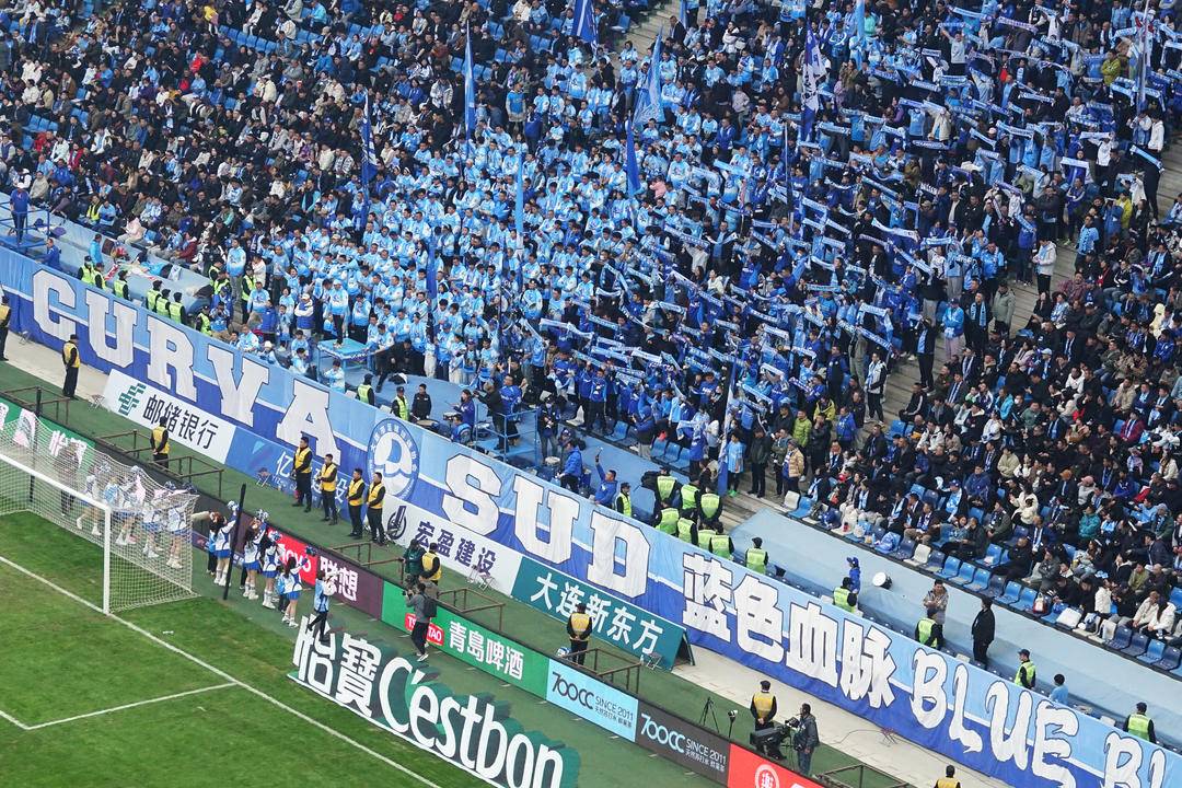 2025年11月22日、数万人のサポーターが大連梭魚湾足球場に集い、大連英博海発チームに声援を送った。