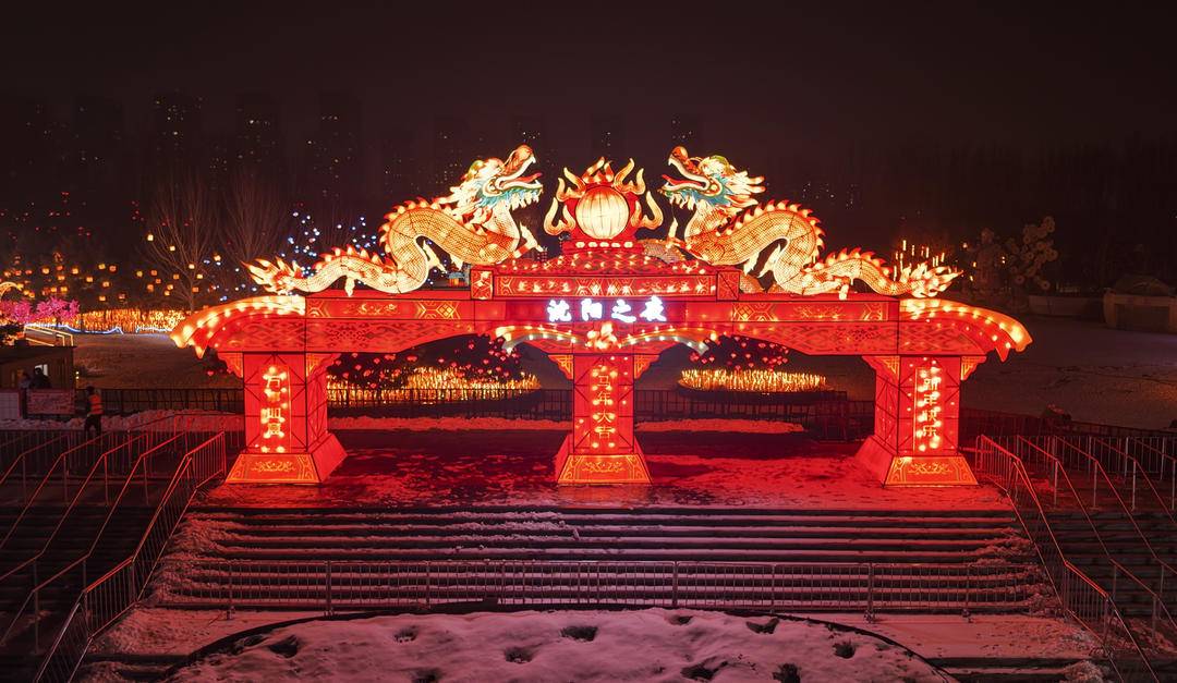 12月28日、市民や観光客が瀋陽市和平杯世界サッカー公園で開催中の「瀋陽之夜 年越し灯り祭り」を楽しんだ。