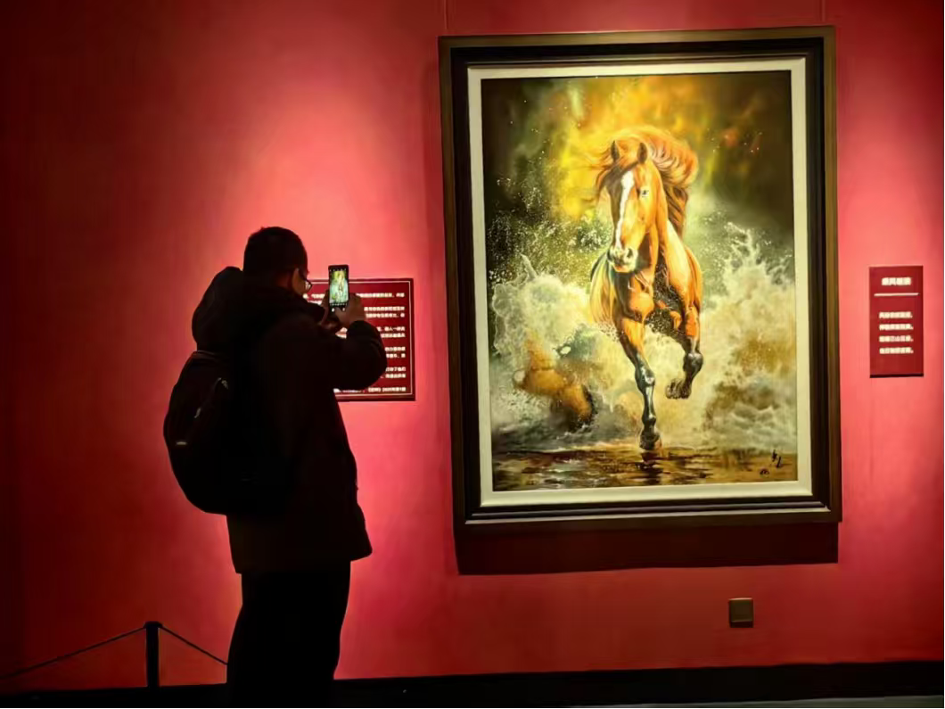 2026年元旦、瀋陽市博物館には多くの人々が訪れ、大変なにぎわいを見せた。博物館のホールには馬頭琴の力強い旋律が響き渡り、人々の心を高揚させた。多くの市民が早朝から寒さを冒して「駆ける馬、春を迎える――黄広亮油絵作品展」を訪れ、一点一点の作品が来場者の心を打った。