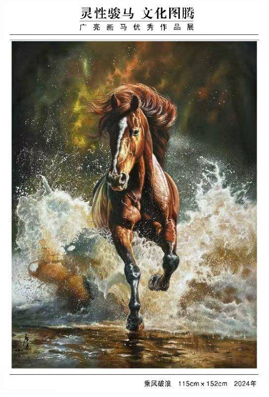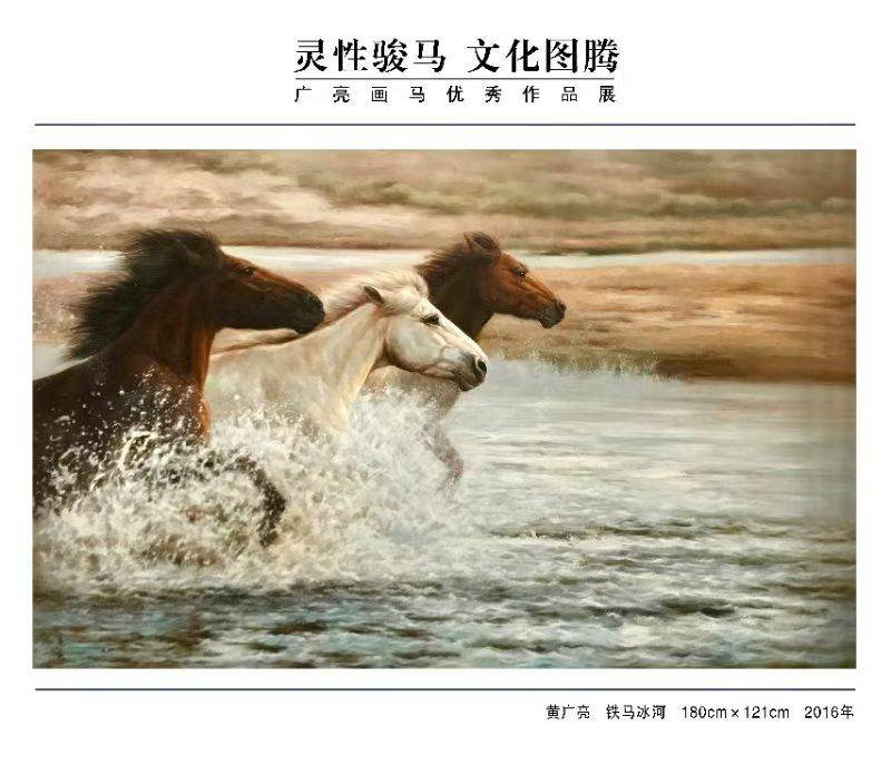 黄広亮は次のように語る。「私は幼い頃から中国の古典小説に登場する馬のイメージが好きでした。あの一直線に突き進む英雄的な気概が今も私に影響を与えています。私は40年以上馬を描き、常に各地に赴き創作のヒントを探してきました。今回の展覧会は技巧を見せびらかすためではなく、このような形で中華民族の奮闘向上する『龍馬の精神』を示し、私たちが前進し、奮い立つことを激励したいと思っています」。
