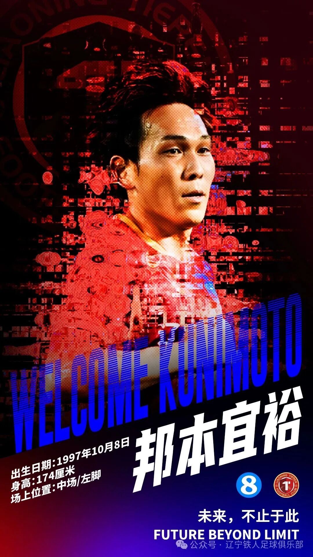 1月22日、中国スーパーリーグ昇格チームの遼寧鉄人足球倶楽部は、日本人サッカー選手、邦本宜裕(くにもと たかひろ)との契約を再締結したことを公式発表した。