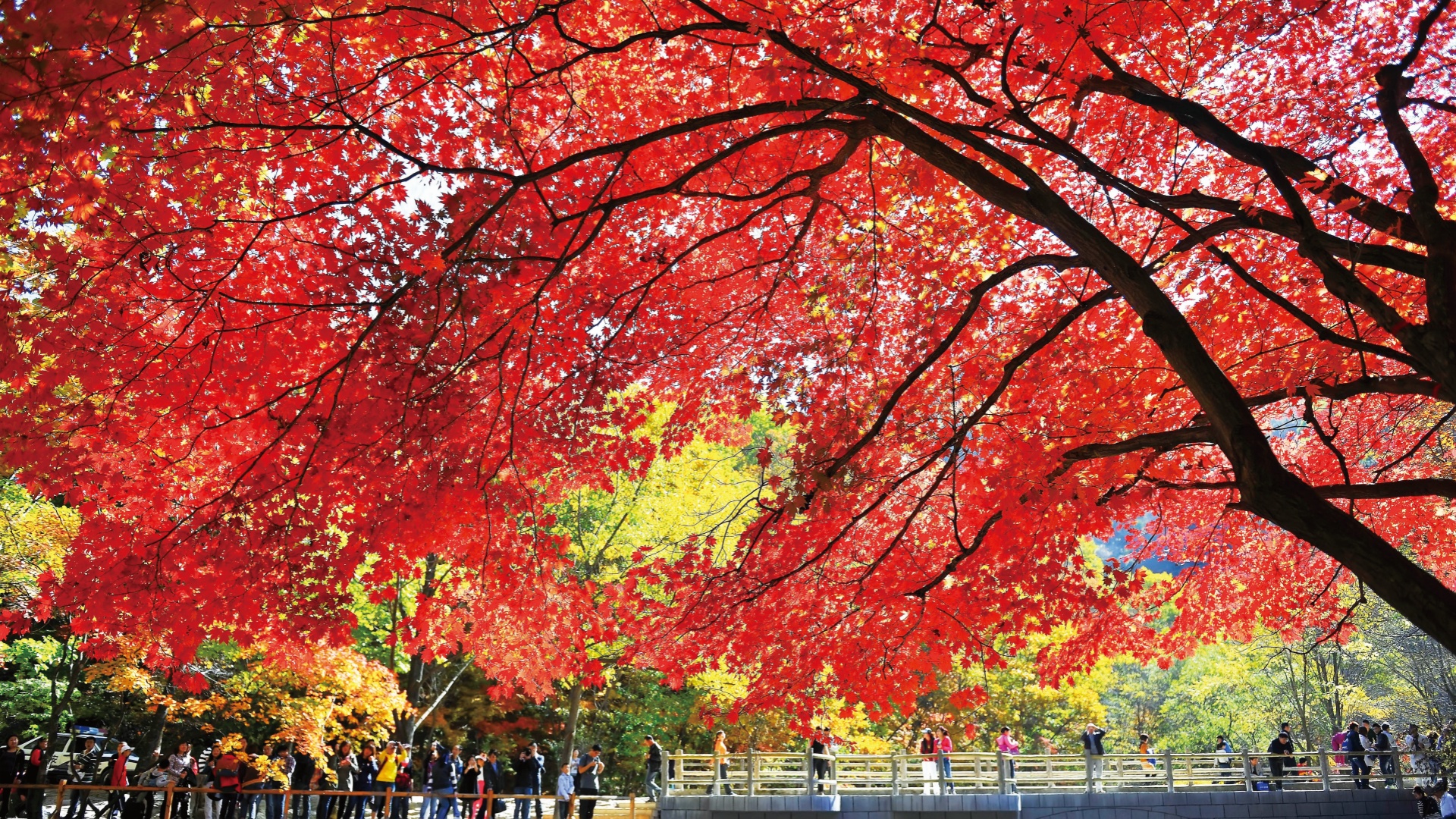 На фоне чарующих осенних пейзажей туристы могут насладиться неторопливой и умиротворяющей прогулкой на бамбуковом плотике по лазурным водам посреди живописных гор Гуаньмэньшань (г. Бэньси). Вокруг простираются леса и их зелёный, багряный и жёлтый убор создаёт радующие глаз картины осенней природы. Яркое солнце скрыто за облаками, что добавляет пейзажу нотки вдумчивости и покоя. Как прекрасны горы Гуаньмэньшань в осенние дни!