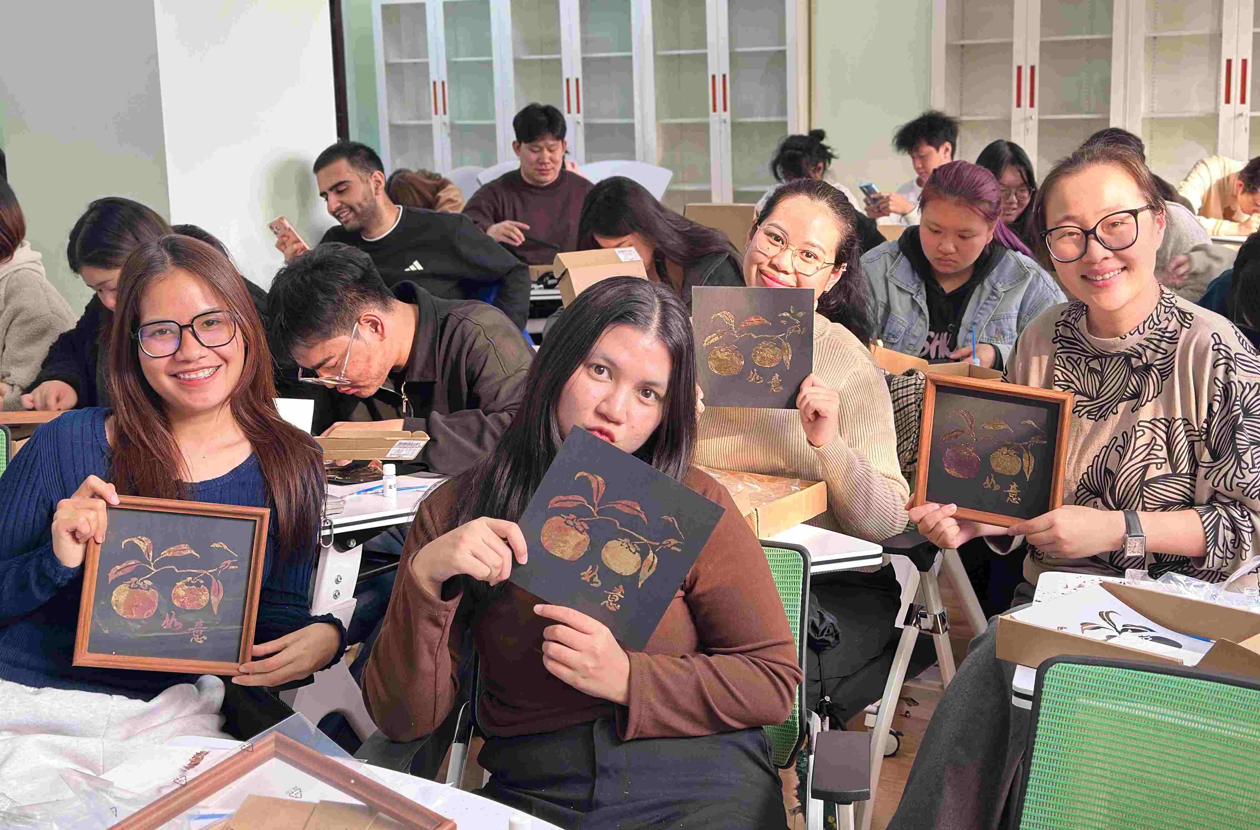 Foil-Burning Paintings Captivate Int’l Students at Liaoning University of TCM