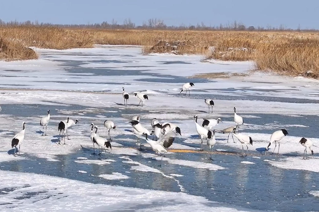 Red-Crowned Cranes Frolic at Panjin Red Beach