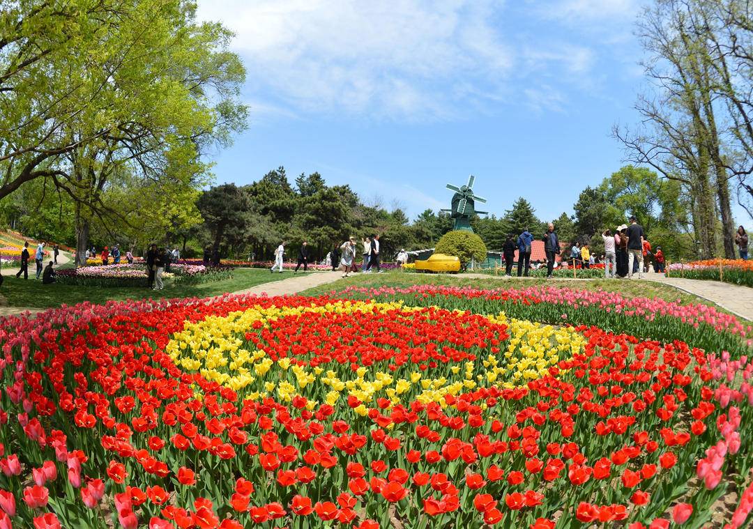 In early summer, more than 600,000 tulips of nearly 50 varieties are in full bloom in the perennial flowers park of Shenyang Expo Garden, attracting many visitors to take photos. Tourists walk on the paths of flower sea, where tulips sway in the wind. It is very pleasing to experience the fantasy world like a fairy tale.
