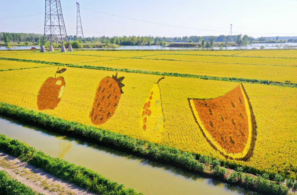 In autumn, the paddy field painting in Liaohe Cultural Tourism Scenic Area in Tai’an County, Anshan City, Liaoning Province has attracted lots of visitors. The colorful and magnificent paddy field painting shows the splendid landscape of a bumper harvest. The golden paddy field shines in radiance under the sun, swaying gently in the breeze, playing a symphony of nature.