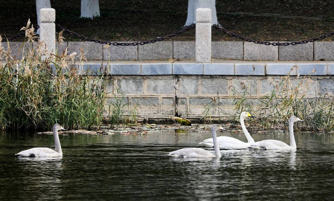 Recently, a flock of white swans have flown to Wuli River in Huludao, Liaoning Province. They swim freely in the water and sometimes dive into it to seek for food. In this seaside city with lush trees and clear water, where swans crane their necks and sing to the sky, a harmonious picture scroll of humanity and nature has been slowly unfolding.