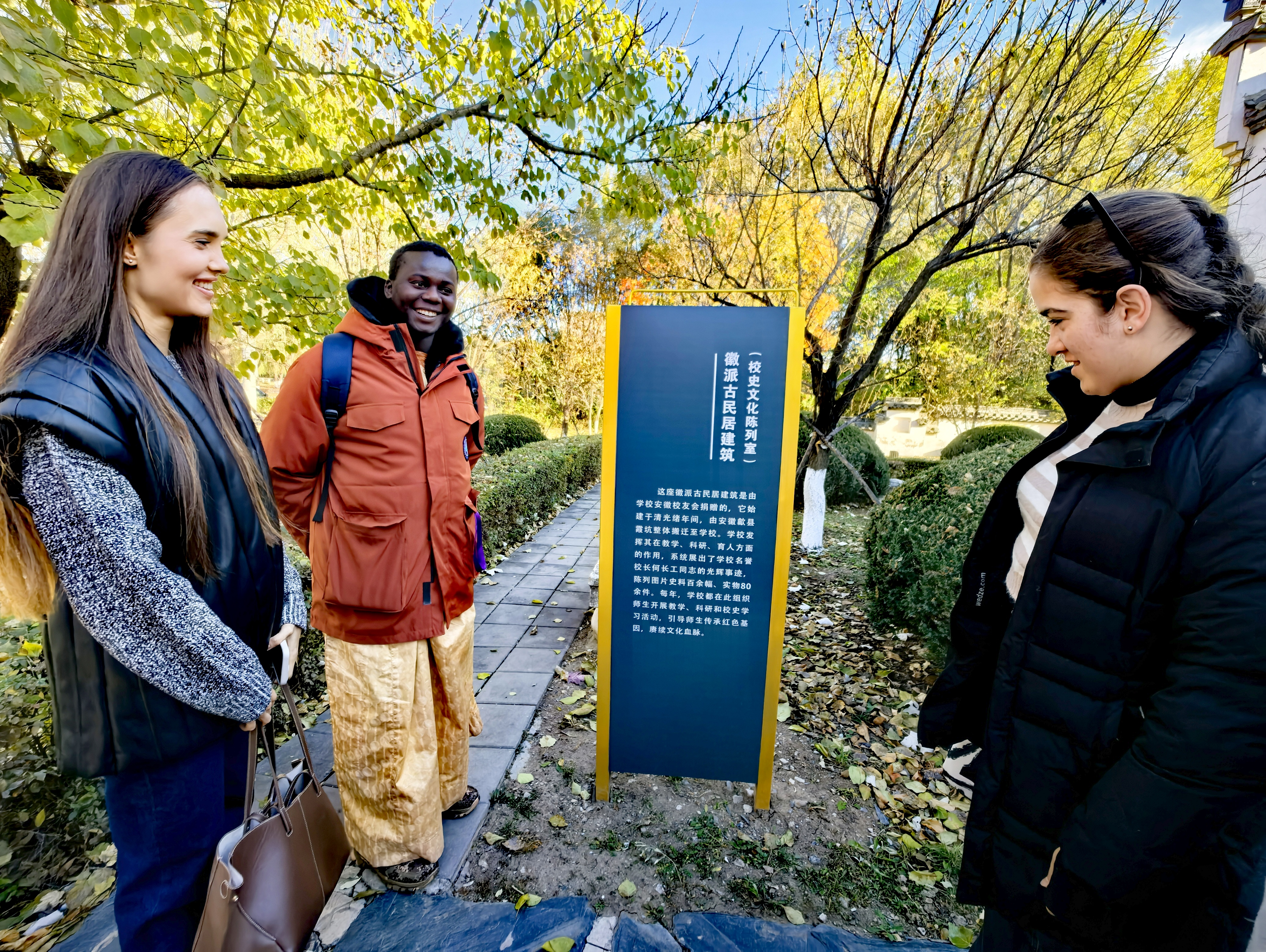 The campus of Shenyang Jianzhu University in Shenyang, Liaoning Province is ablaze with autumn colors. International students from countries, such as Chad, Russia, Senegal, Kazakhstan, and Burkina Faso, visited this university’s ancient building complexes and architecture museum, admiring the exquisite traditional Chinese architecture while learning about unique Chinese architectural techniques.