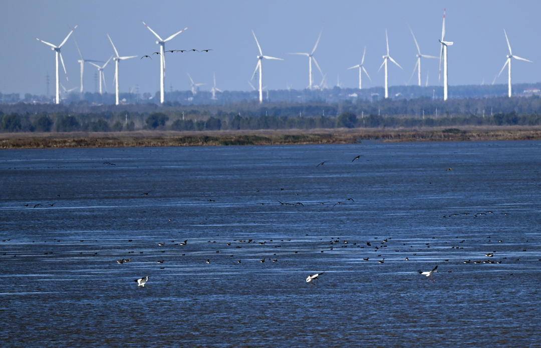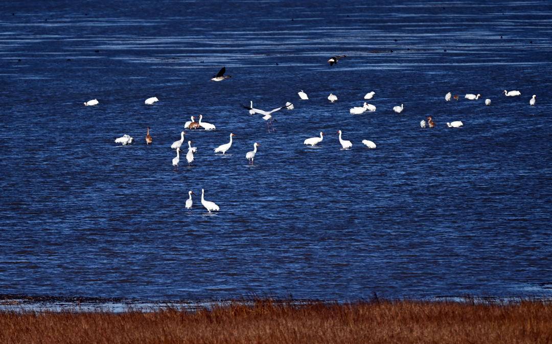 Recently, the Wolong Lake Scenic Area in Kangping County, Shenyang City, Liaoning Province, has witnessed the southward migration of numerous migratory birds, such as oriental white storks, white cranes, swans, and wild geese. They rested, foraged and hovered over the shimmering waters, creating a magnificent ecological landscape for the Wolong Lake.