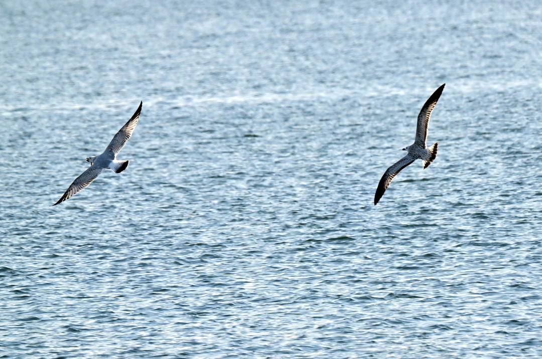 As the peak of bird migration season arrives, flocks of seagulls and red-billed gulls have arrived at the Dingxiang Lake in Shenyang City, Liaoning Province. They either flutter their wings to hover and chase each other, or ripple the water surface to swim and forage. Their glossy plumage forms a beautiful contrast with the clear azure sky.