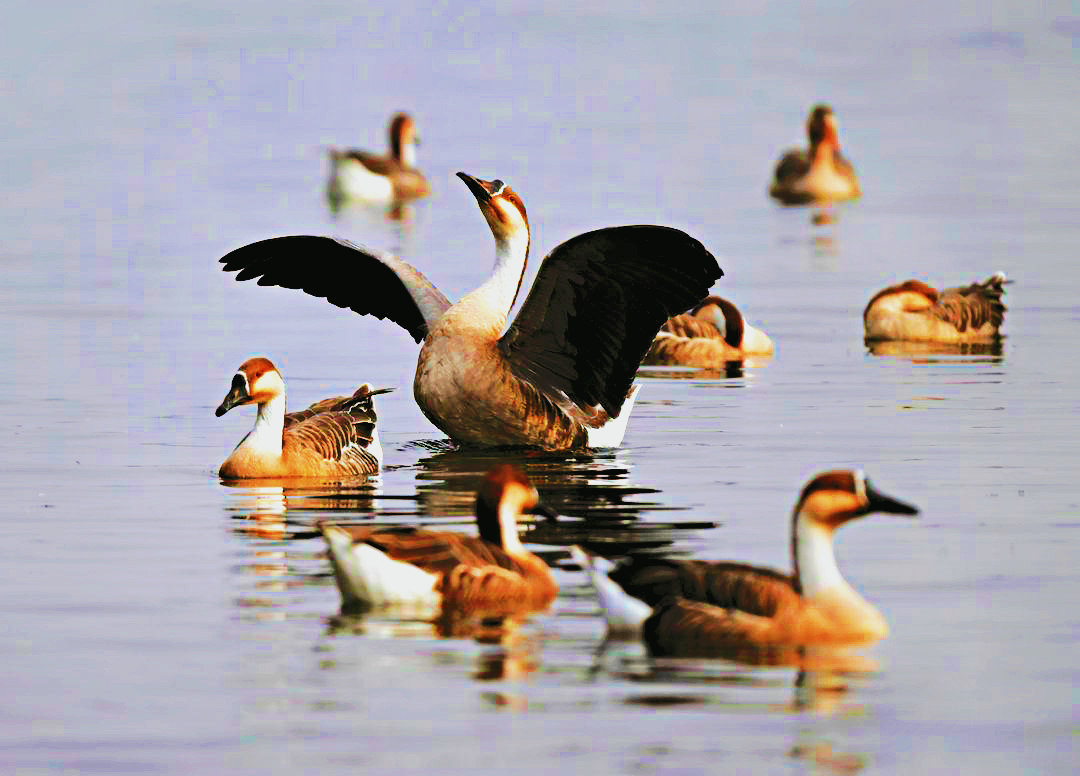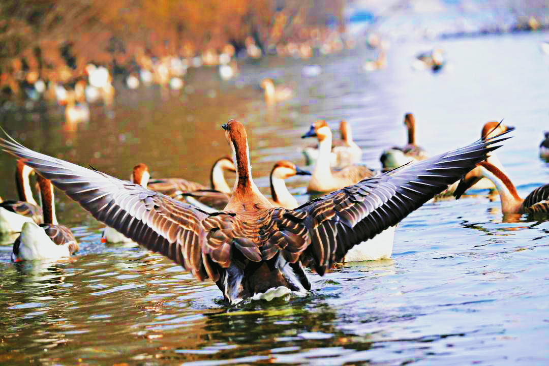 Shenyang’s Hunhe River Bird Island has welcomed a grand gathering of thousands of wild geese. These wild geese add a vibrant splash of color to the Hunhe River in winter. They gather in small groups or large flocks, spreading their wings and soaring high. Blending seamlessly with the surrounding natural scenery, they create a harmonious and captivating ecological scene.