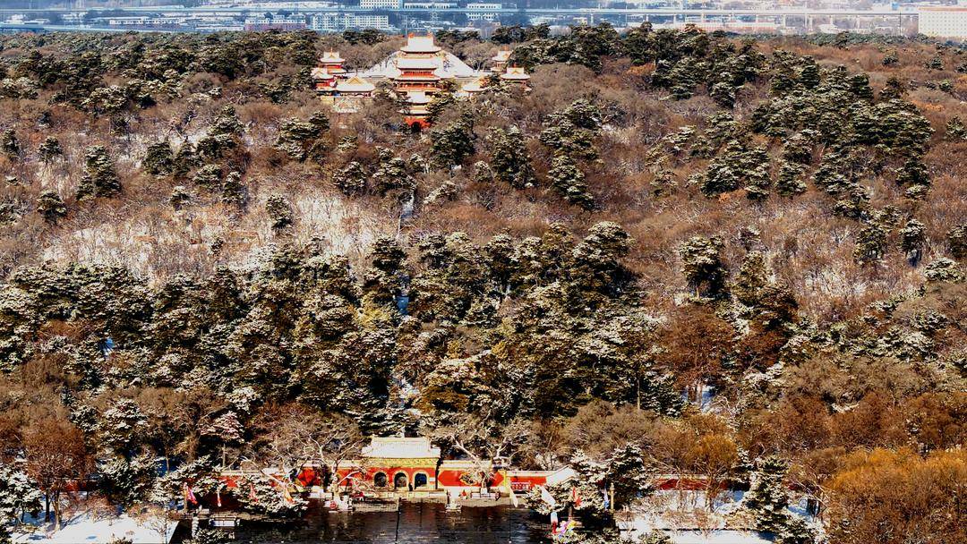 After snowfall, Dongling Park in Shenyang exudes both primitive simplicity and elegance. Centuries-old pines and cypresses are draped in snow, their verdant hues contrasting beautifully with the pure white snow, while the vermilion walls appear even more serene amid the snowy scenery.