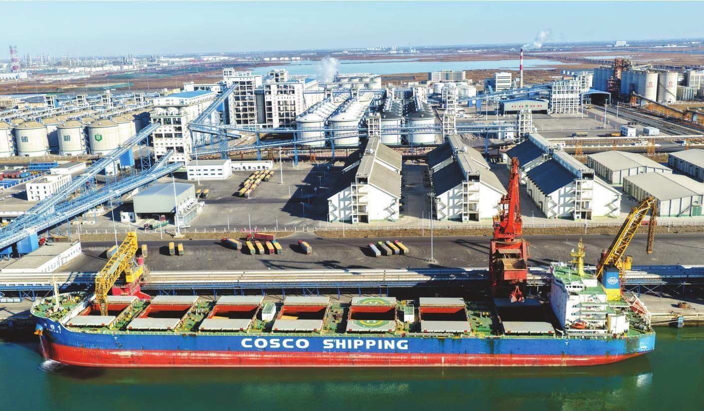 Recently, at Sinograin (Panjin) Storage and Transport Co., Ltd., a 70,000-tonne cargo vessel was berthed at the grain wharf, unloading soybeans. More than a dozen heavy trucks lined up and waited to load the soybeans, creating a bustling scene at the wharf.