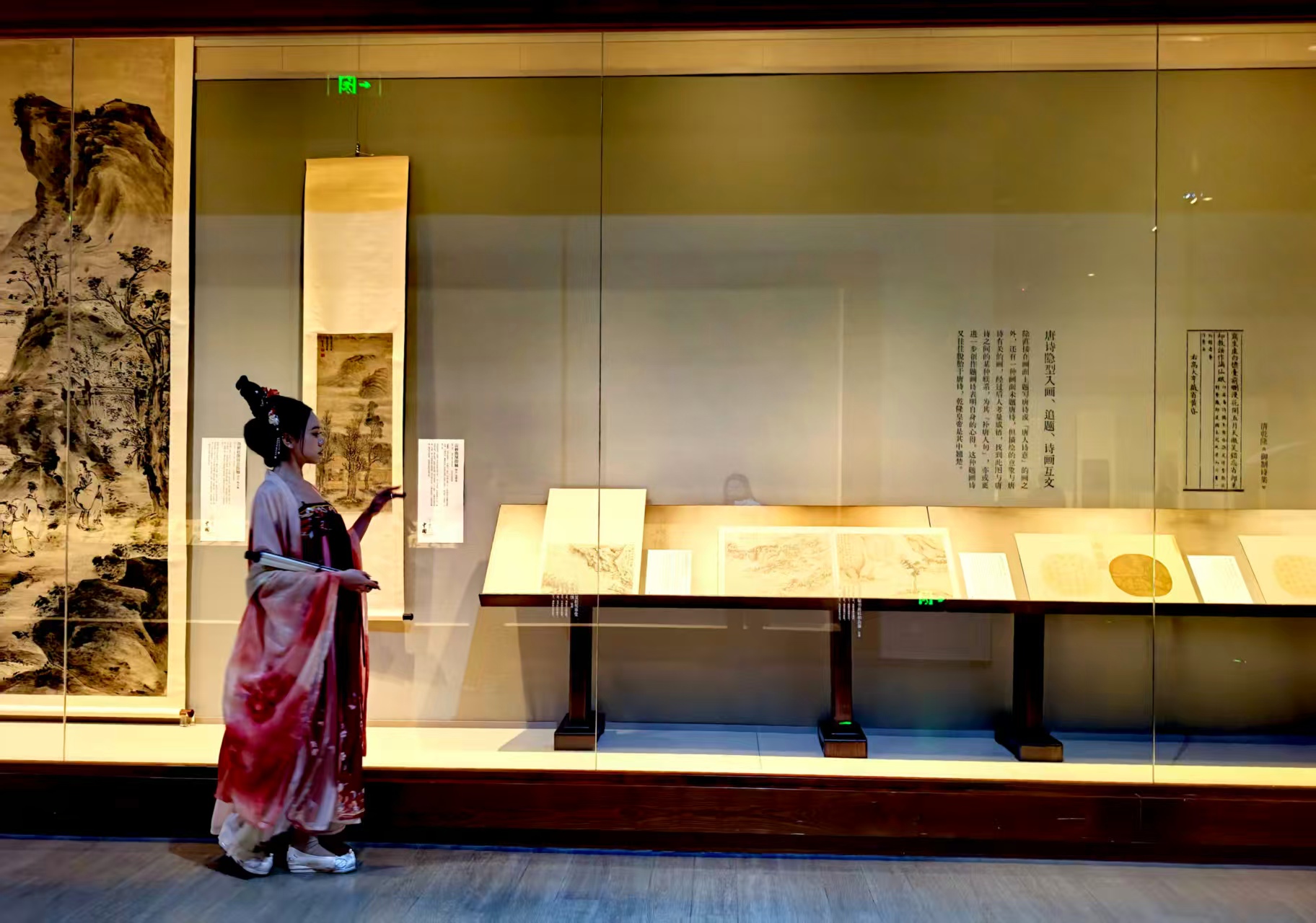 The Liaoning Provincial Museum’s New Year’s exhibition, China in Poetry and Painting: The Poetic Realm of Chinese Painting, is about to open, and its setup work is nearing completion. On December 29, in the exhibition hall on the third floor of the Liaoning Provincial Museum, four cultural and museum experts were curating the exhibition of a national treasure. Wearing white gloves, they meticulously removed the painting Lady Guoguo’s Spring Outing from a wooden box, placed it in the display case, and gently unfurled the scroll on the tailor-made display stand. As the New Year approaches, this national-treasure masterpiece will finally be unveiled again!