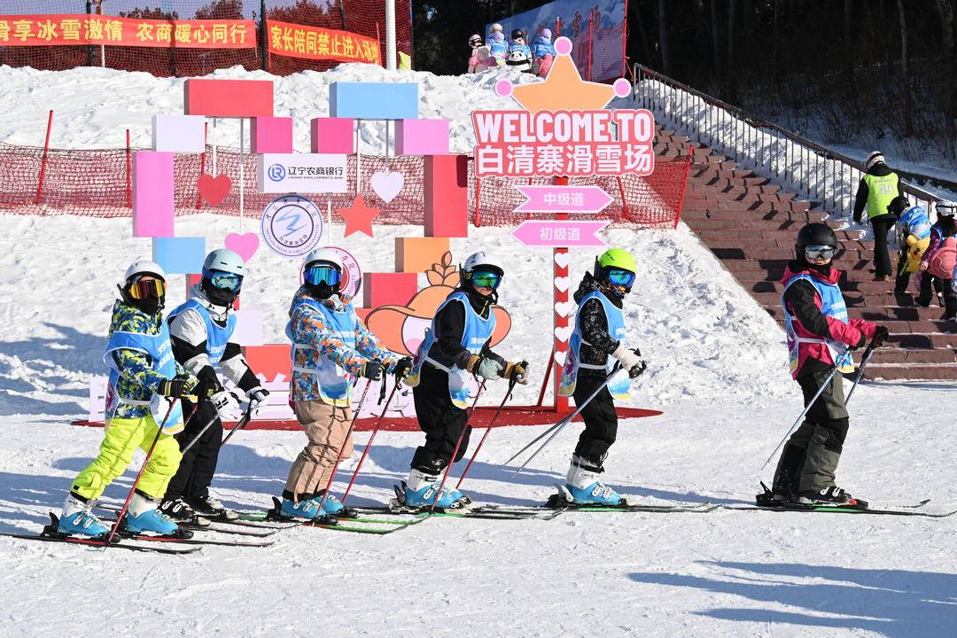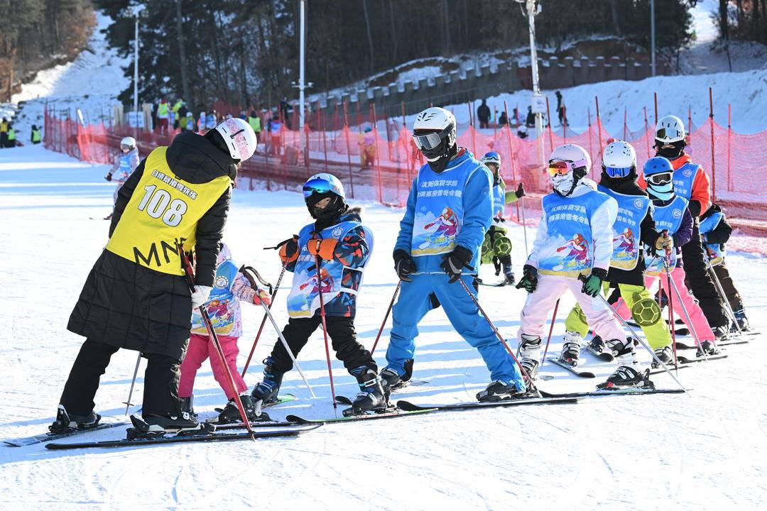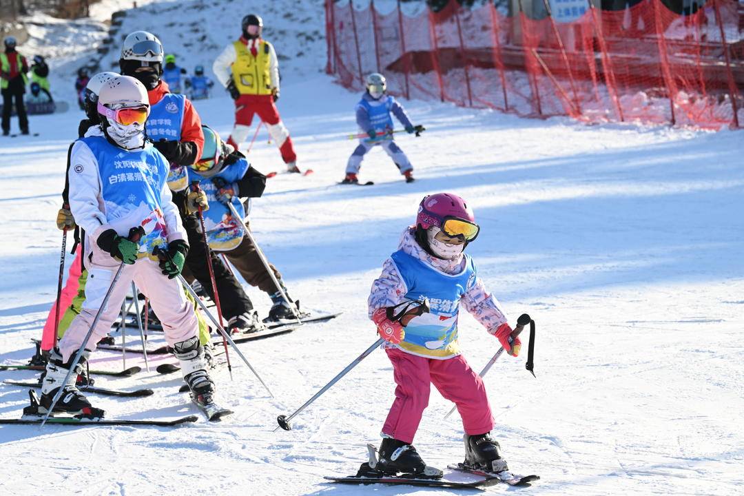 At Shenyang Baiqingzhai Ski Resort, a dozen children in bright ski suits, fully equipped with helmets, ski poles and protective gear, glided slowly down the slopes under their instructors’ guidance, reveling in the joy of skiing.