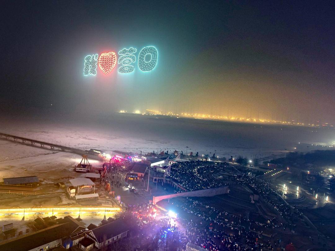 As the Spring Festival draws near, a spectacular drone light show lights up Shanhai Square in Bayuquan District, Yingkou City, Liaoning Province. Hundreds of drones in synchronized formations present an immersive visual feast for local residents and visitors.