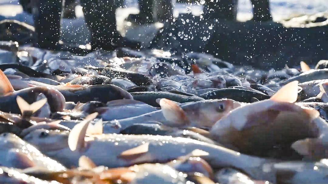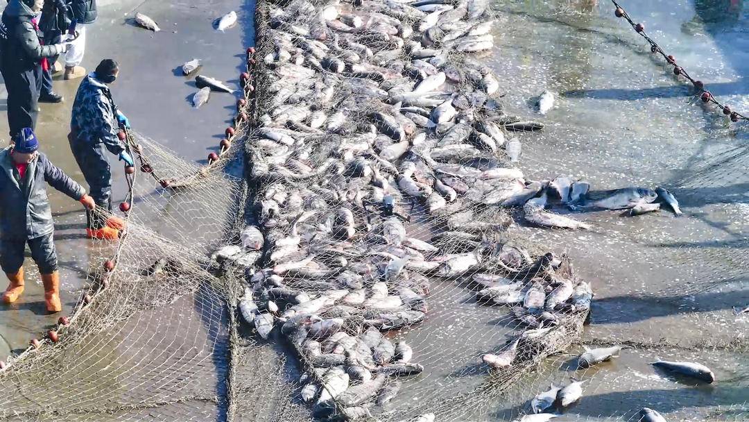 As a massive net was slowly hauled in, plump and lively fish leapt out of the ice hole one after another at Caihu Lake in Faku County, Shenyang City, Liaoning Province. A spectacular scene of “thousands of fish leaping out of the lake” wowed on-site visitors and locals.