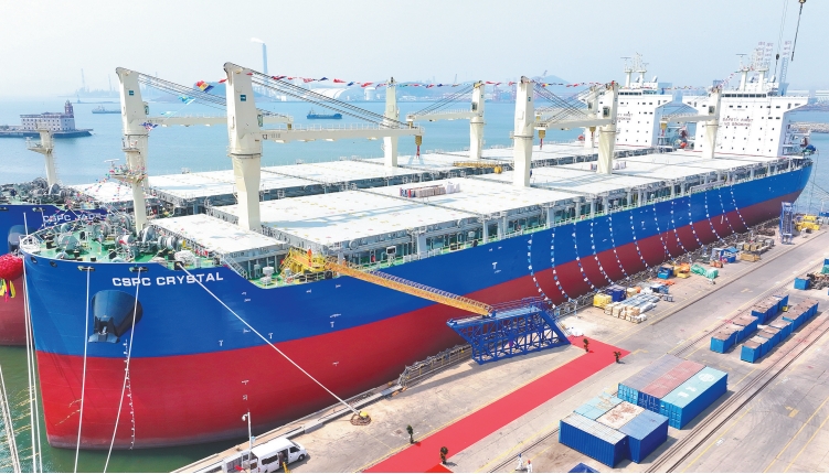5月22日,大连中远海运重工建造的8.5万吨新型多用途船“CSPCCRYSTAL”轮在大连命名。该船是大连中远海运重工系列多用途纸浆船的第四代升级产品首制船舶,为目前全球最大载重吨位多用途纸浆船。该船舶的成功建造,为我国纸浆特种运输船队再添新兵。