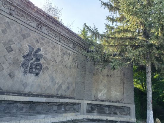 雕有“福”字的青砖照壁。