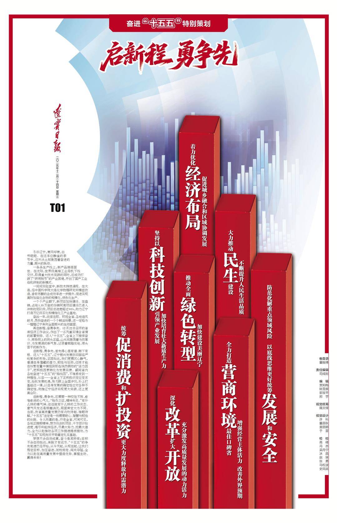 启新程、勇争先,首先得心里有谱、脚下有根。迈入“十五五”,辽宁振兴发展依旧面临严峻复杂的形势,正因如此,我们更需沉心静气,看清自身蕴藏的潜力、韧性与后劲,这样才能在纷繁变量中捕捉到那些悄然萌动的“活力因子”,把积极因素转化为发展实绩。翻阅省内各地奋进“十五五”的“路线图”,不难感受到一种理性、从容——全省上下正积极识变应变求变,抢抓发展机遇,努力跟上全国步伐,补上打基础这一课,以自身发展的确定性应对各种不确定性,助推辽宁经济实现更大突破、迈上更高台阶。