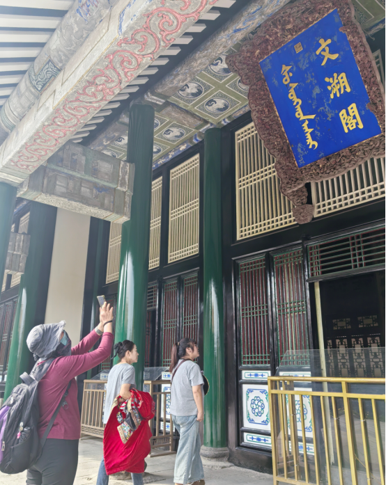 李理会长表示,除了文溯阁,故宫西路还建有碑亭、宫门、嘉荫堂、戏台、东西回廊、九间殿等房屋,融入了丰富的江南园林元素,共同形成与原有大内宫阙既联系又相对独立的部分,构造了沈阳故宫最具文化气息与休闲韵味的建筑组群。纵观整个西路格局,院落层次清晰,套院相接而不乱,花草奇石点缀其间,的确为皇家读书作画和休闲放松的理想之地。
