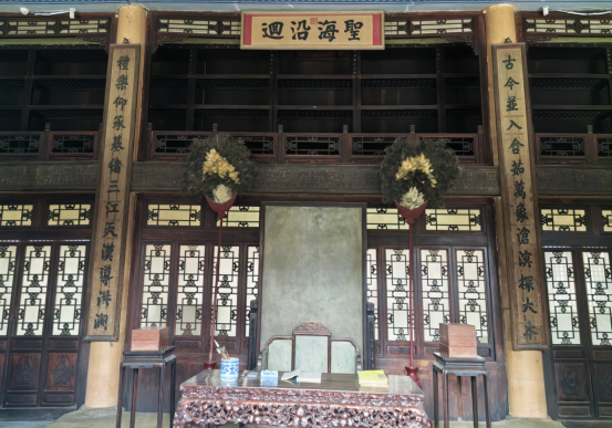 沈阳的藏书楼名为“文溯”,是取“溯涧求本”之意,它修建于乾隆四十六年至四十八年,乾隆帝第四次东巡到沈阳,文溯阁刚刚建成。当年逾弘历的乾隆再次回到故乡,看着新建宫殿和文溯阁中盈架而陈的《四库全书》,颇为感慨,曾挥毫写下一首长诗。弘历还为文溯阁御笔亲题写一对楹联,流传至今,其中上联为“古今并入含茹万象沧溟探大本”,下联为“礼乐仰承基绪三江天汉导洪澜”,中有横额“圣海沿回”。