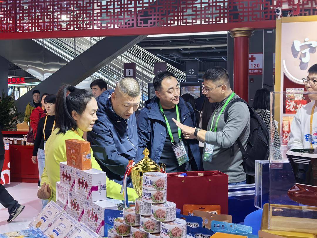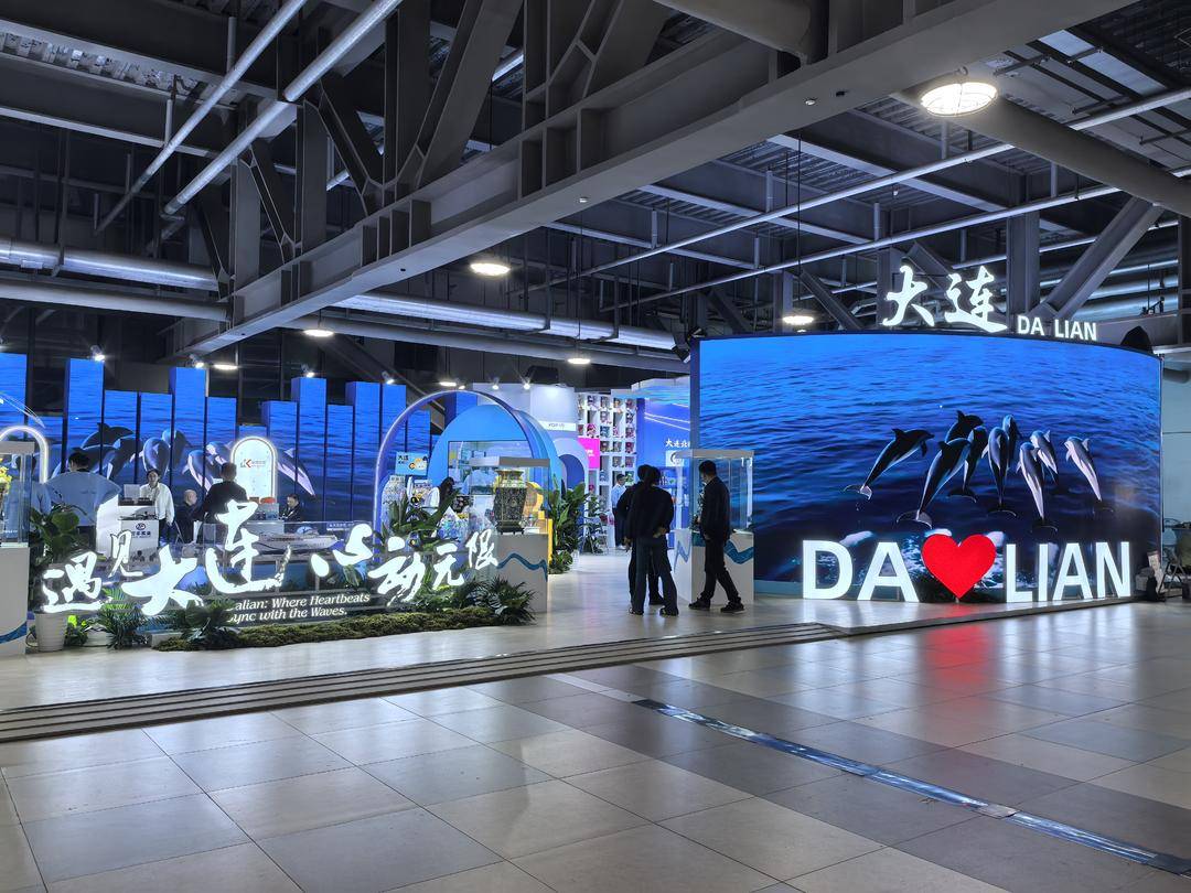 浅棕、墨绿色调下,抽象线条勾勒出山脉轮廓,搭配木质展架,好似山林之景;地面铺着海浪纹理地垫,顶部悬挂着蓝色纱幔,仿佛碧海波涛……走进本届进博会,辽宁展区形象布展紧贴“山海辽宁”,以“乐购辽宁,惠享美好”为主题,集结了大连海鲜、盘锦大米、葫芦岛泳装等200余种“辽宁好物”,集中展示“辽宁制造”的深厚底蕴和现代商业的创新活力。大连展区以“遇见大连 心动无限”为主题,划分“地方名产”“文化传承”“新品潮品”“人文原创”四大展示单元,携特色展品与创新成果集中参展,全方位展现大连的人文底蕴与城市发展活力。
