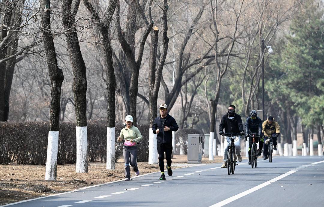 明るい春の日差しの中、市民たちはランニング、サイクリング、ローラースケート、ボール遊びなど様々な形で体を動かし、心身を解きほぐし、体力を強化しながら、屋外スポーツの楽しさを存分に味わった。運動を通して春の息吹を感じ、その生き生きとした姿は、積極的で健康的、そして意気軒昂とした精神を表し、国民一体となったスポーツの盛り上がりを醸し出していた。