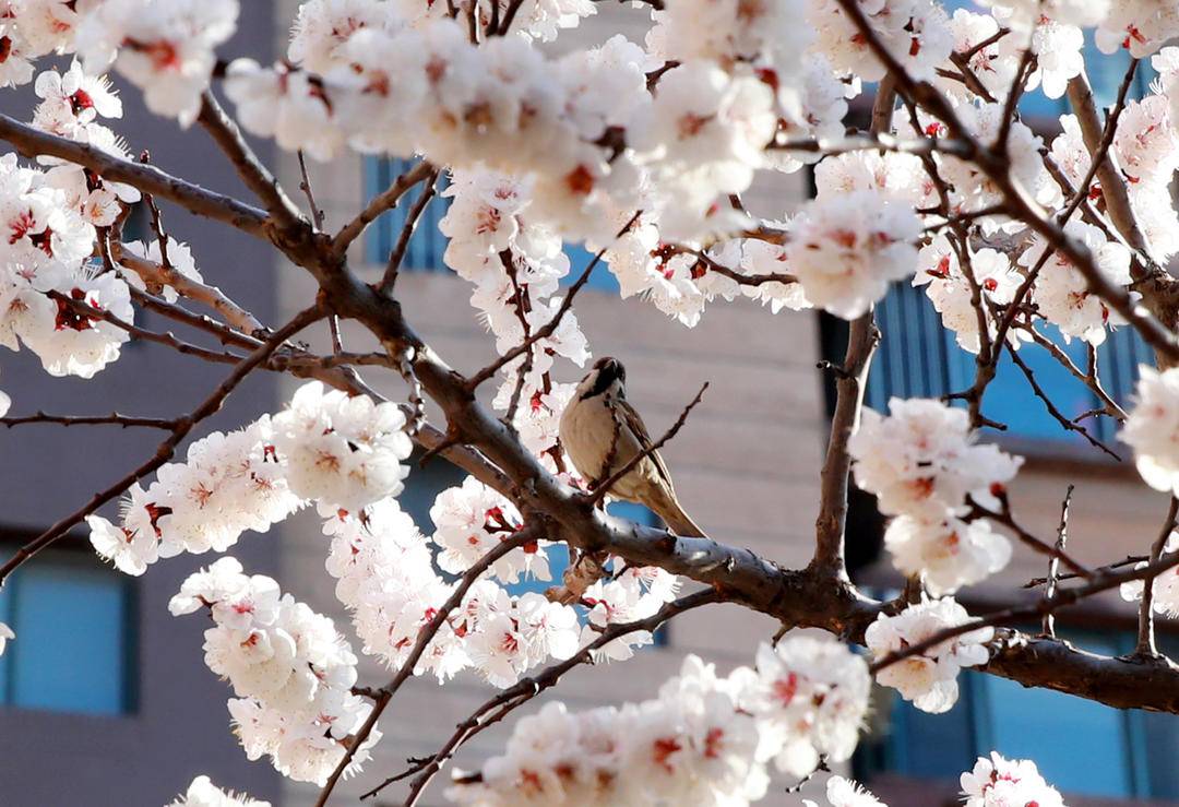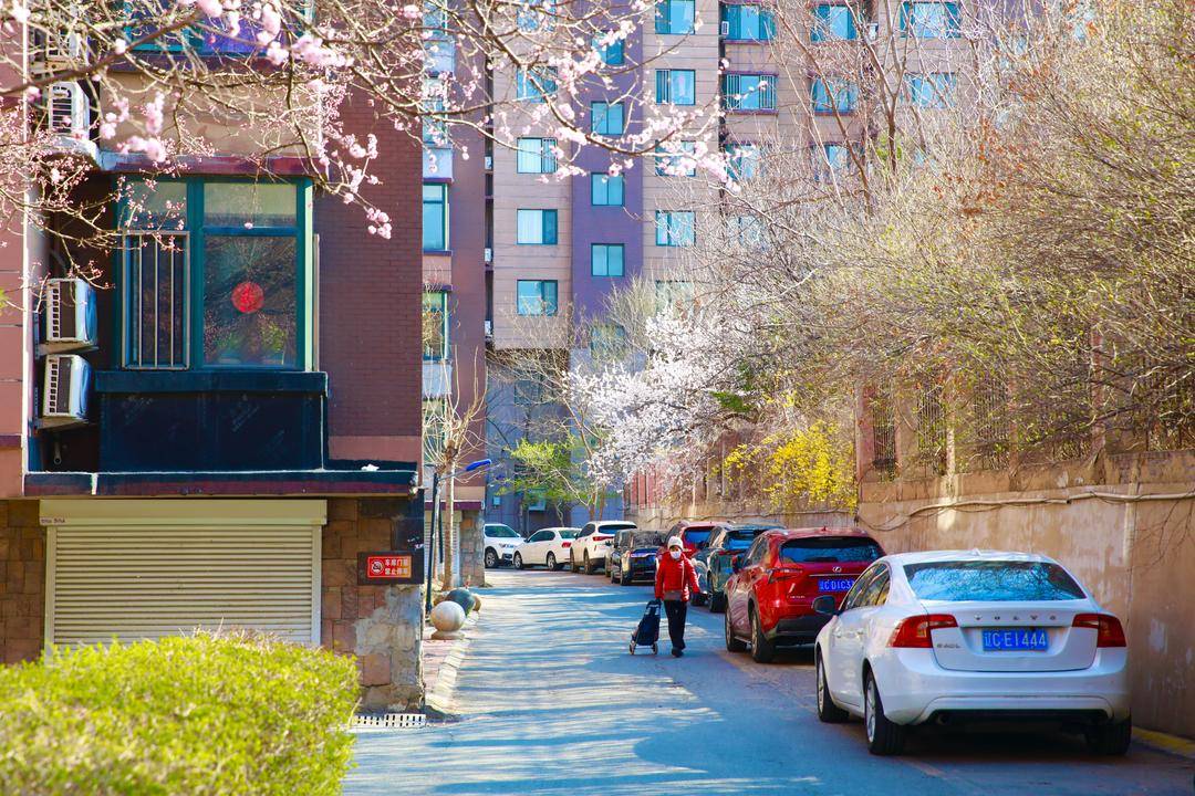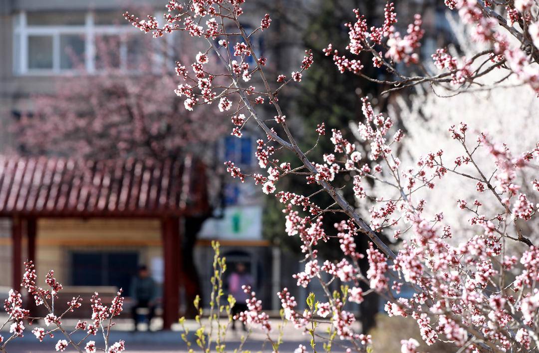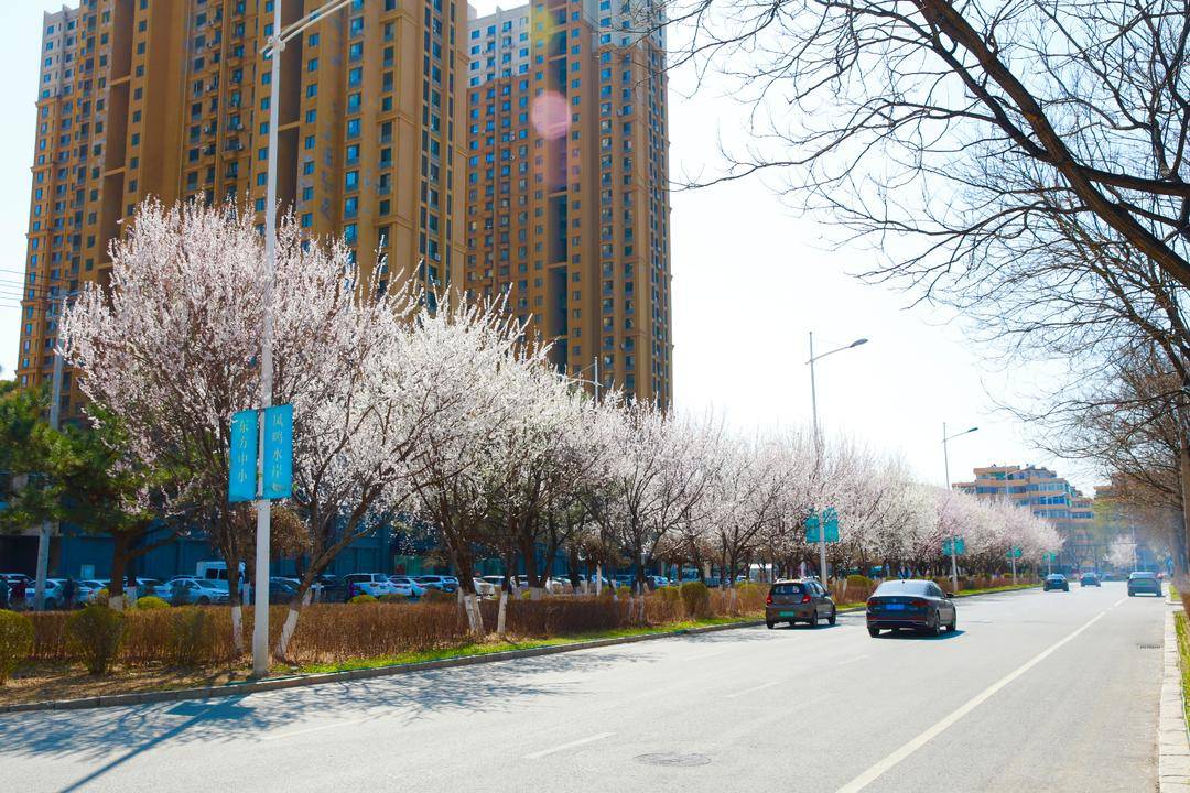 4月8日、天候は晴れて気温が上昇した。鞍山市内の主要道路や街路、住宅地や公園では、シモフリモモの花、杏の花、レンギョウ、スモモの花が次々と咲き誇り、その美しさを競っている。街全体がまるで大きな花園のようだ。