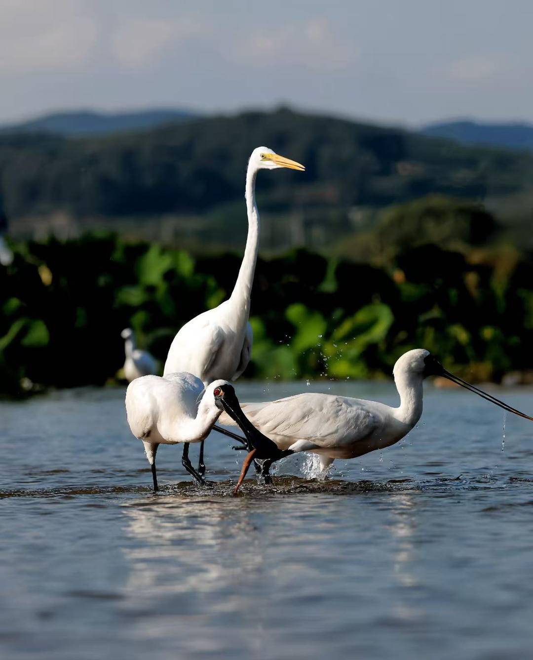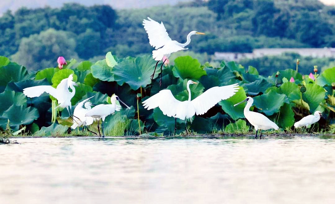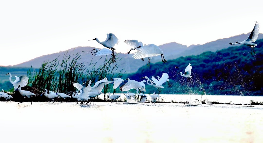 В глубине водно-болотных угодий озера Гуаньцзяху в уездном городе Чжуанхэ города Далянь провинции Ляонин , находится оживлённая база по сохранению диких птиц. Каждый год с марта по октябрь этот район становится раем для отдыха более десятка редких видов птиц, включая колпиц. Эти птицы, расправляя крылья над изумрудной водой или ища корм в камышах, своим ловким присутствием наполняют этот пейзаж поэтической красотой.