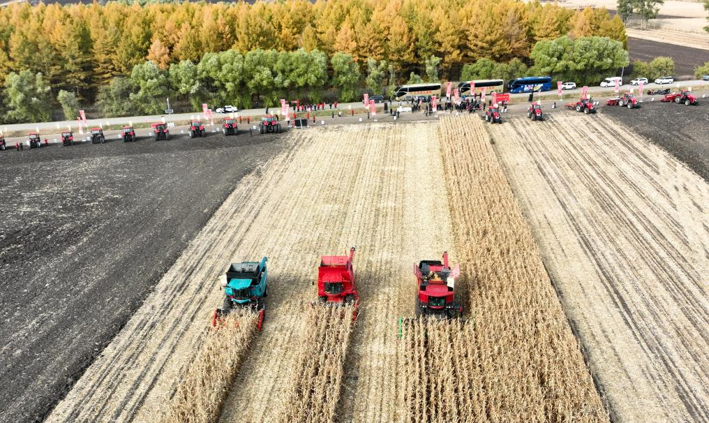 В то время как в Китае в четверг проходит Всемирный день продовольствия, в основных зернопроизводящих регионах страны гусеничные комбайны спешно убирают обильный урожай, несмотря на погодные вызовы, угрожавшие посевам.