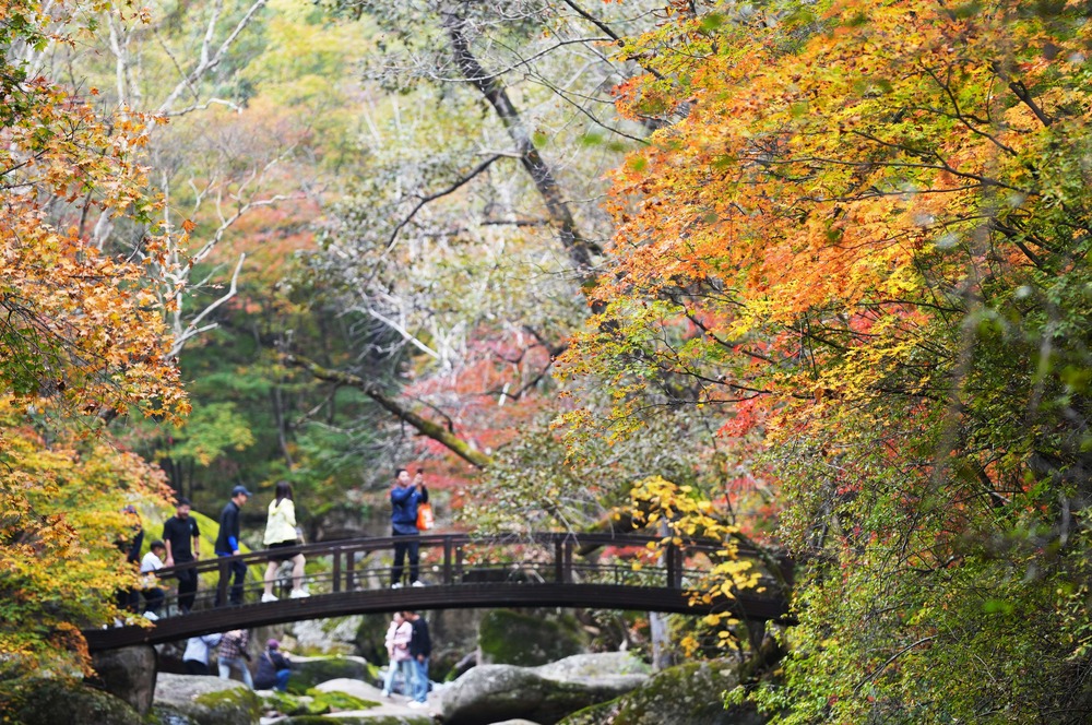 Живописный район Лаобяньгоу в Бэньси, провинция Ляонин , блистателен осенью. Кленовые листья окрасились в ярко-красный цвет, открывая пик сезона осмотра достопримечательностей. Туристы приезжают толпами, чтобы насладиться захватывающим дух природным великолепием.