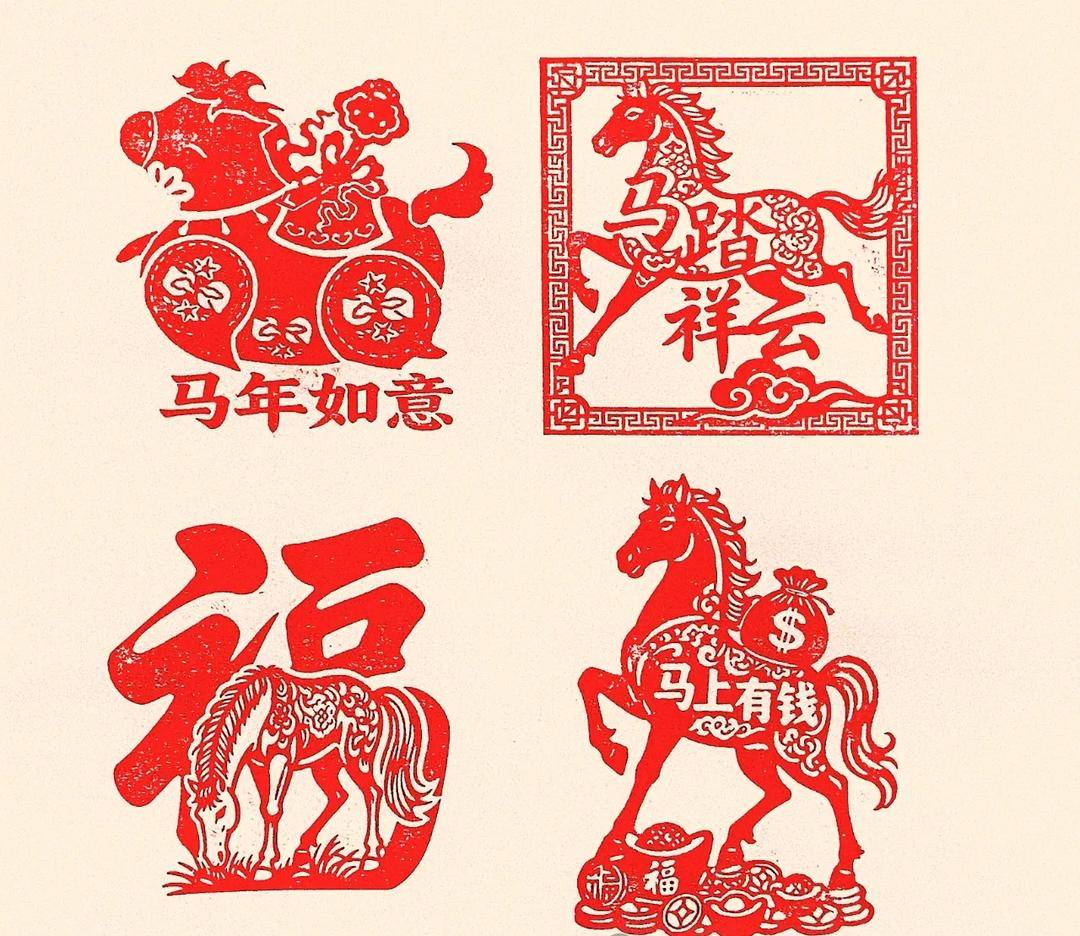 На печатях изображены различные темы, в том числе «Удача и благополучный конь», «Желаю вам немедленной удачи», «Желаю вам немедленного богатства», «Конь, топчущий летящую ласточку», «Желаю вам счастливого года Коня», «Конь, топчущий благоприятные облака» и «Пусть Конь принесет удачу». Каждая печать воплощает прекрасное пожелание на Новый год, такое как изобилие богатства, продвижение по службе и успех во всех начинаниях.