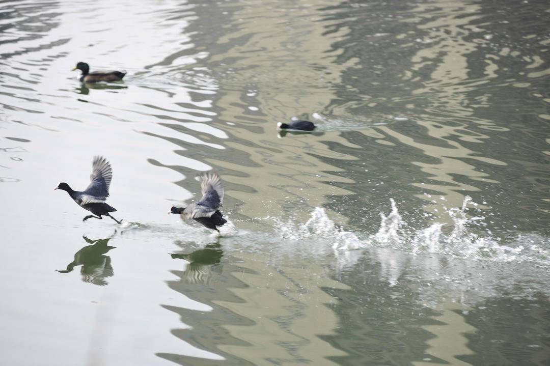 На реке Наньшахэ в городе Аньшань провинции Ляонин стаи диких птиц, в том числе обыкновенные лысухи и кряквы, резвятся и кормятся на воде , наполняя город яркой жизнью.