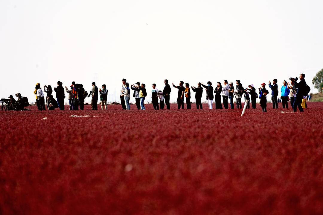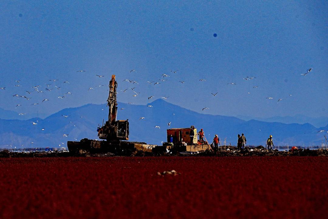 In Yingkou, Liaoning Province, the Daliaohe River Estuary Wetland is adorned with a vast expanse of red seepweed. This stunning landscape, harmoniously complemented by birds in flight, is becoming a major draw for nature lovers.