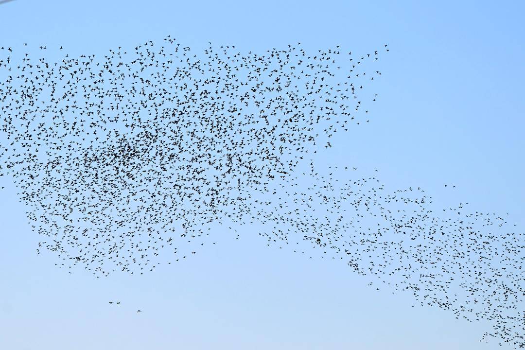 In the Liaohe River Delta of Panjin, Liaoning Province, tens of thousands of migratory birds gather for wintering. They soar into the sky, swirling, scattering, and reforming in mesmerizing patterns.