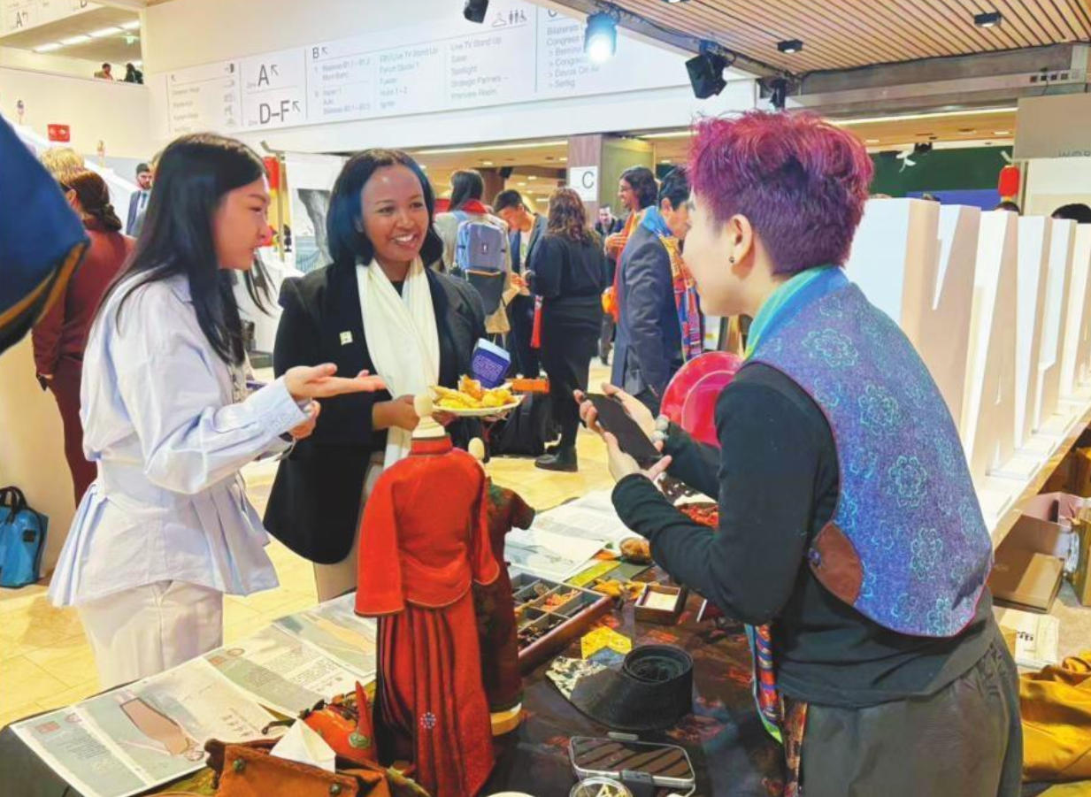 In the core exhibition area, Chinese zodiac-themed “mystery boxes” made of southern Liaoning dough figurines spell out the “DALIAN” logo. Representative intangible cultural heritage works from China, such as Xiuyan jade, Dalian shell carvings, Longquan celadon, and gambiered Guangdong gauze handmade qipao (cheongsams), showcased the essence of traditional Chinese culture. Notably, specially designed horse silhouette images display the “History of Davos in Dalian”, with nine representing the eight collaborations between Davos Forum and Dalian, and the vision for further deepening cooperation in the future.
