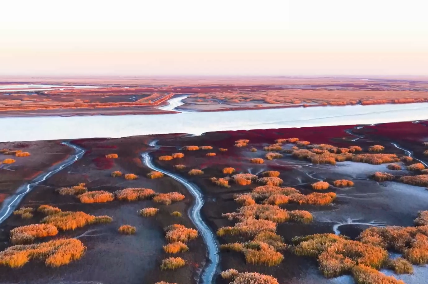 A large number of icy “tidal trees” have emerged in the wetlands at the Liaohe River Estuary in Panjin, Liaoning Province. The crisscrossing tidal gullies resemble towering trees rooted in the earth, forming a stunning natural scene.