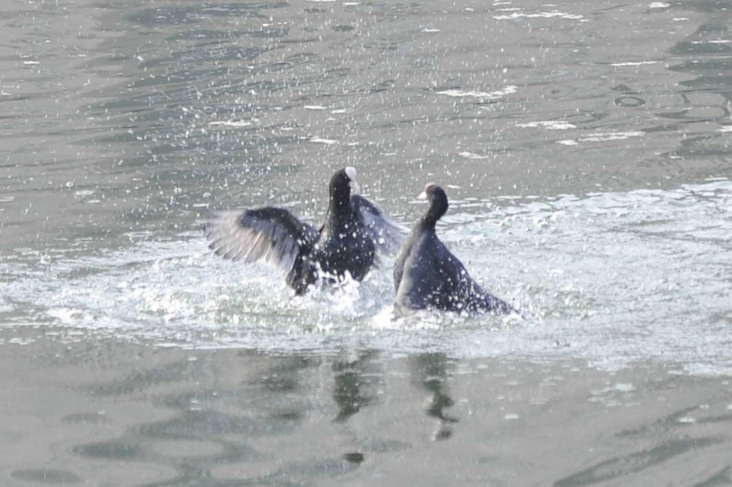 At the Nanshahe River in Anshan City, Liaoning Province, flocks of wild birds including common coots and mallards are frolicking and foraging on the water, infusing the city with vibrant life.